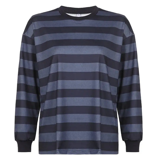 Women's Striped Long Sleeve Crew Neck Sweatshirt